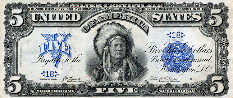 The 1899 Bank Note portrait is of Chief Takoka-Inyanka or Running Antelope of the Oncpapa or Hunkpapa Sioux tribe. Running Antelope was
