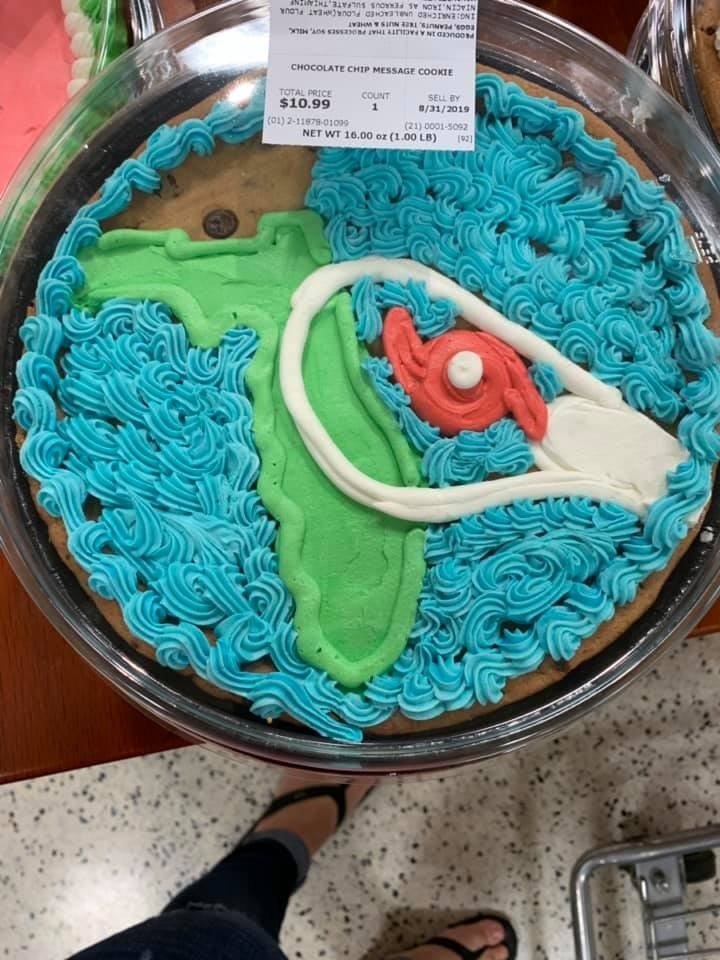Jessica Sullivan shared the following picture on Facebook a couple of days ago and Publix, one of my favorite shopping destinations, has taken some rather sharp criticism for making the cookie cake.