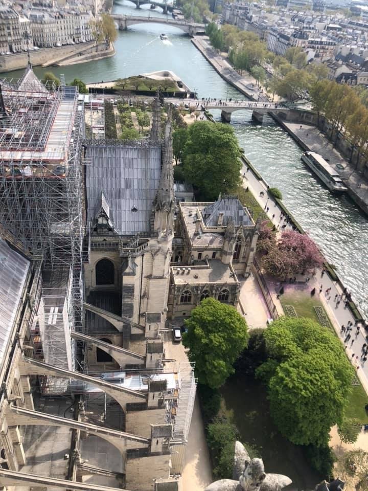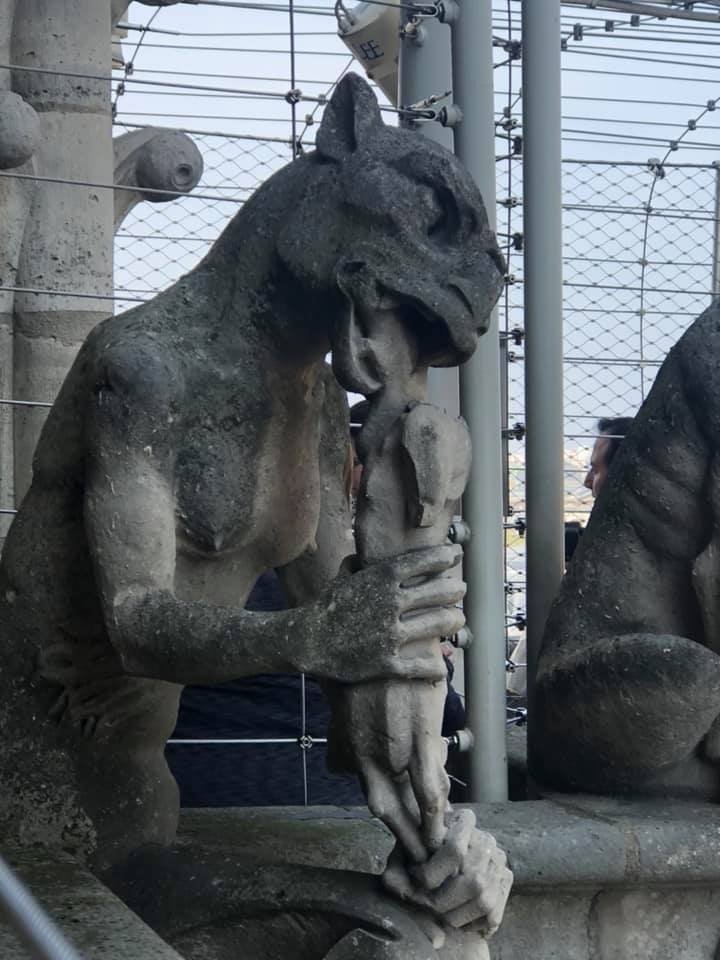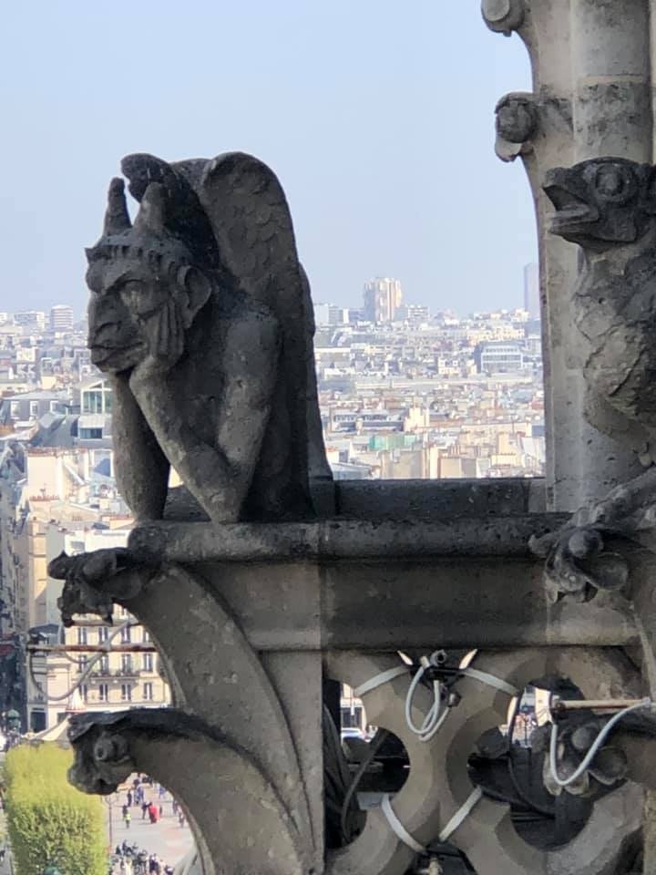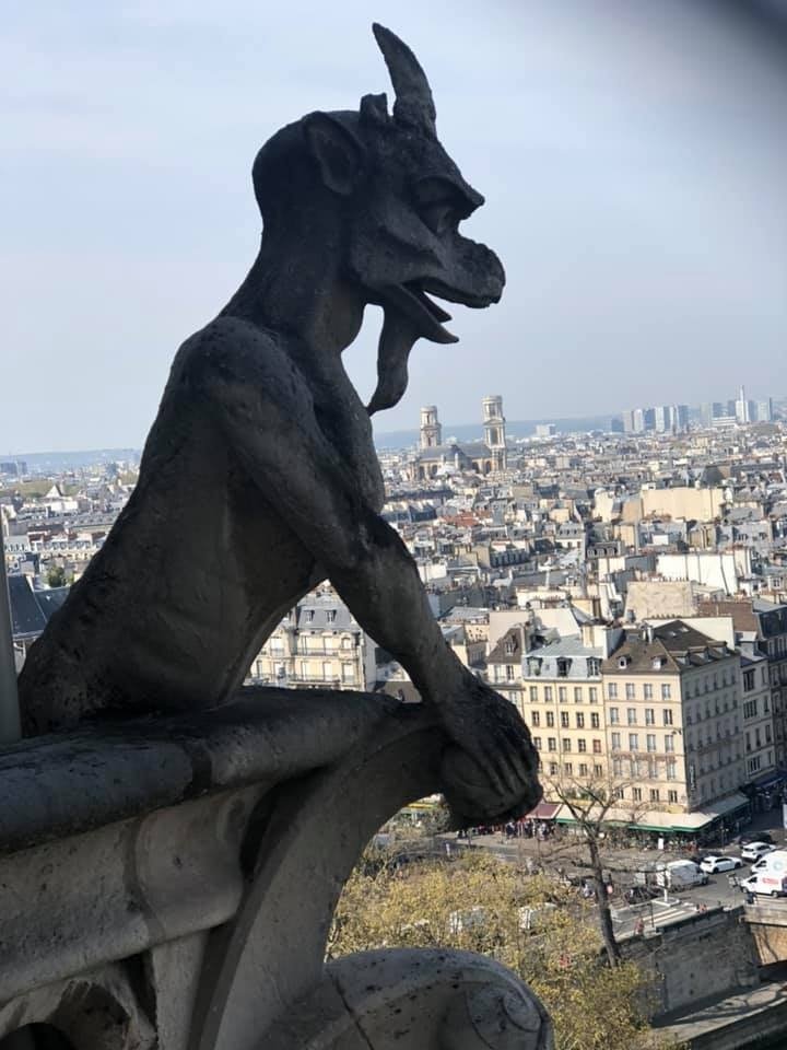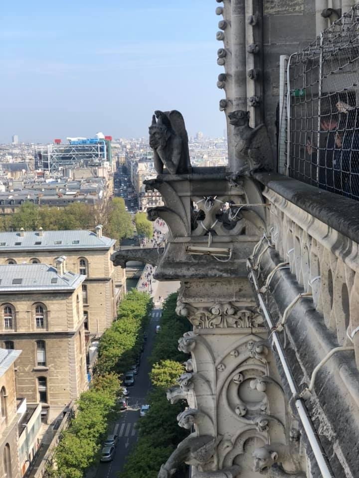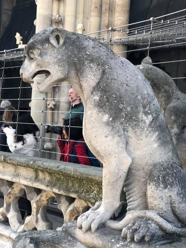 According to Nicolai, “We were up in the towers of Notre Dame at 11:30 seeing the gargoyles, then went back at 5pm to visit the church when the line was shorter. We left about 1/2 hour before the fire (started).”