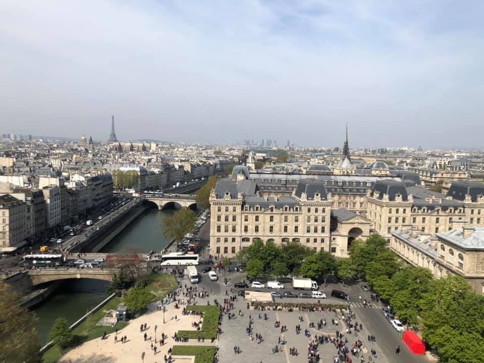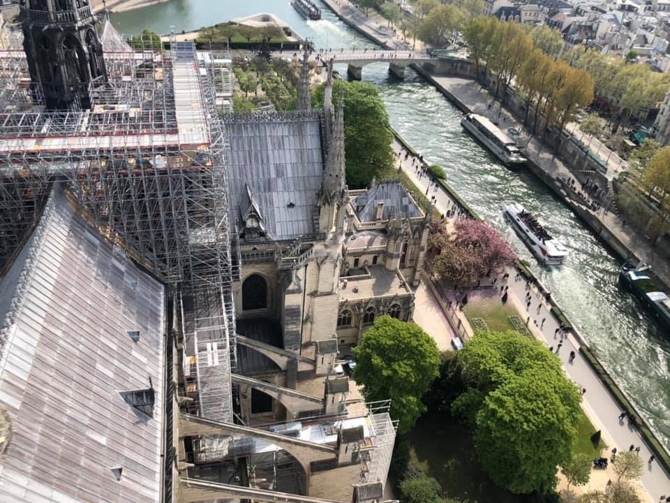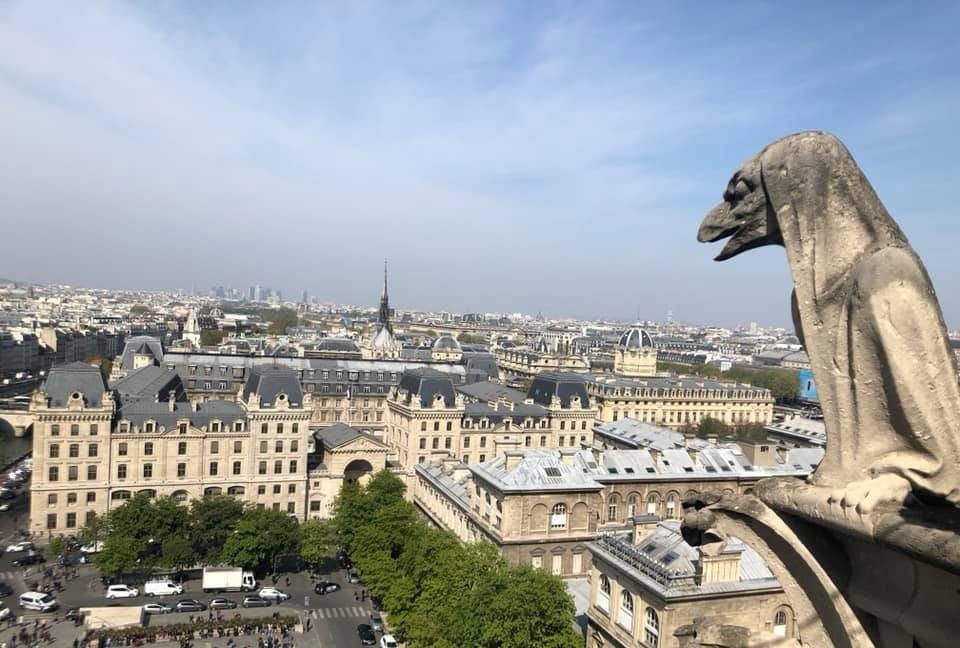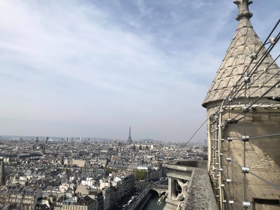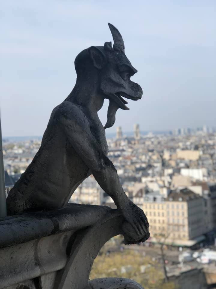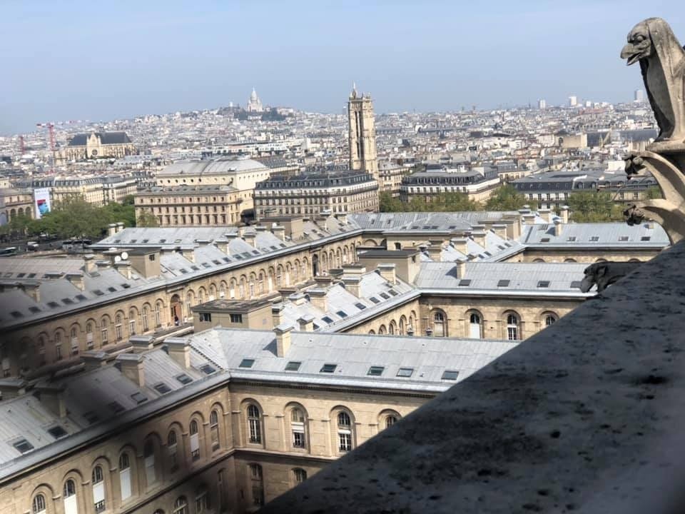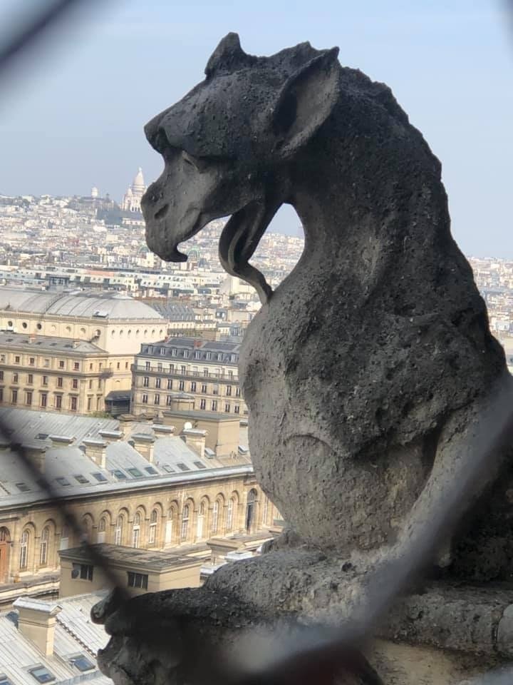 According to Nicolai, “We were up in the towers of Notre Dame at 11:30 seeing the gargoyles, then went back at 5pm to visit the church when the line was shorter. We left about 1/2 hour before the fire (started).”