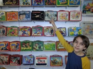 Jacob and Connor didn’t seem all that thrilled when I s’plained to them that we were go’in to visit the Lunch Box Museum. Of course, they hadn’t no experience with metal lunch boxes. The famous little boxes had never been a part of their life. It was a part of forgotten American culture that was completely foreign to them.